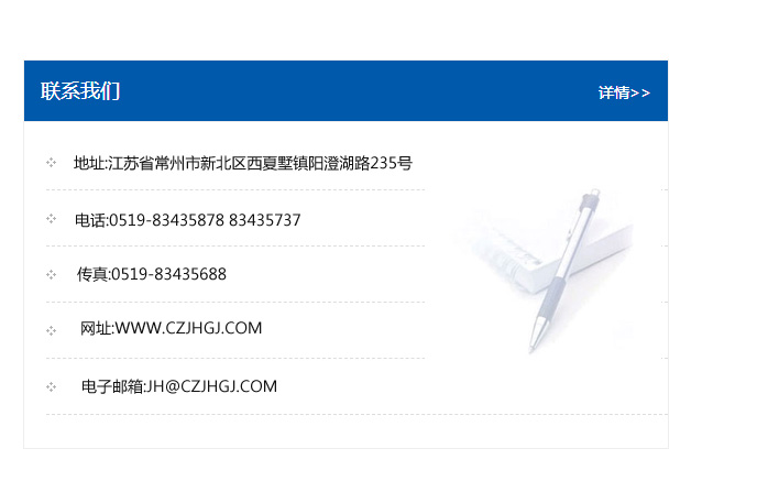 地址:常州市新北區友邦商務大廈1幢16、17層  電話:0519-85101652  傳真:0519-85112595  郵編:213022  網址:www_cz-jiayue_cn.mzmoney.com  郵箱:xiajifengaa@163.com